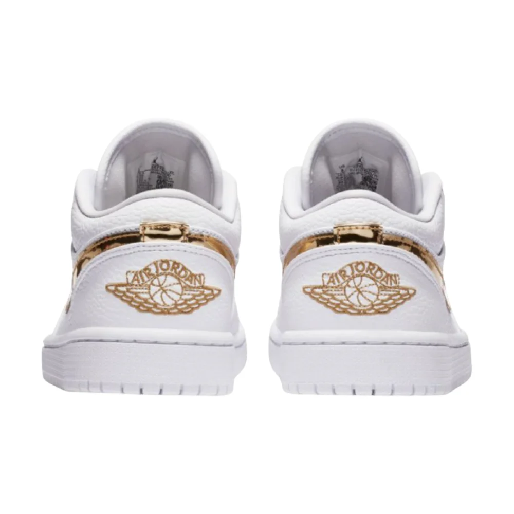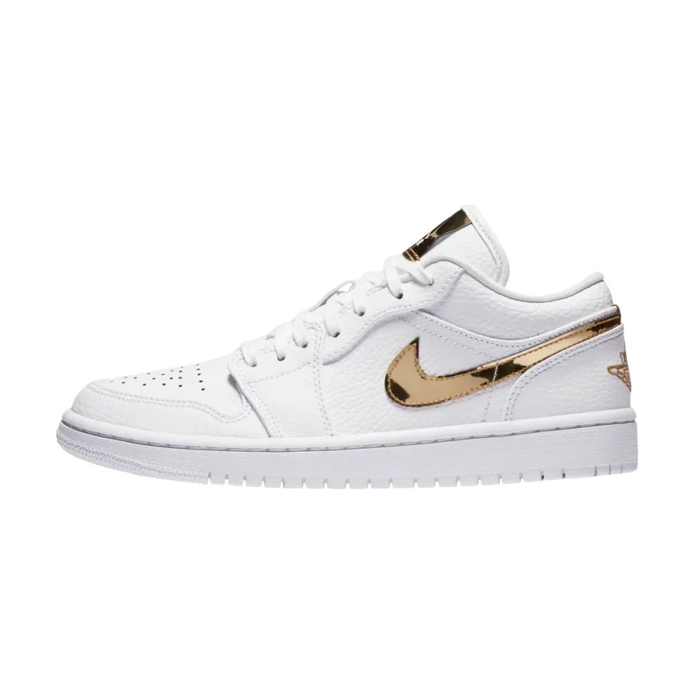 Jordan 1 Low White Metallic Gold je absolutní must-cop release, který přináší ikonický design v luxusním provedení s prémiovou bílou kůží a oslnivými metalickými zlatými akcenty.