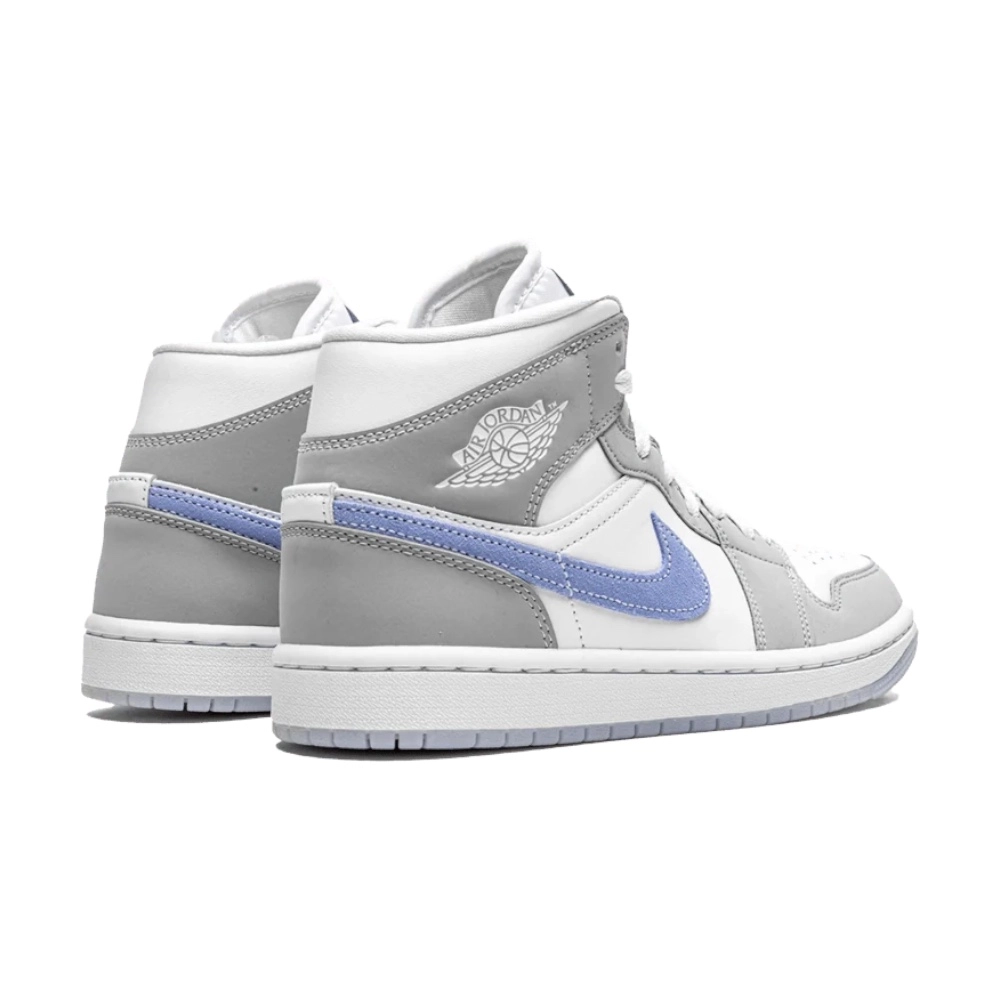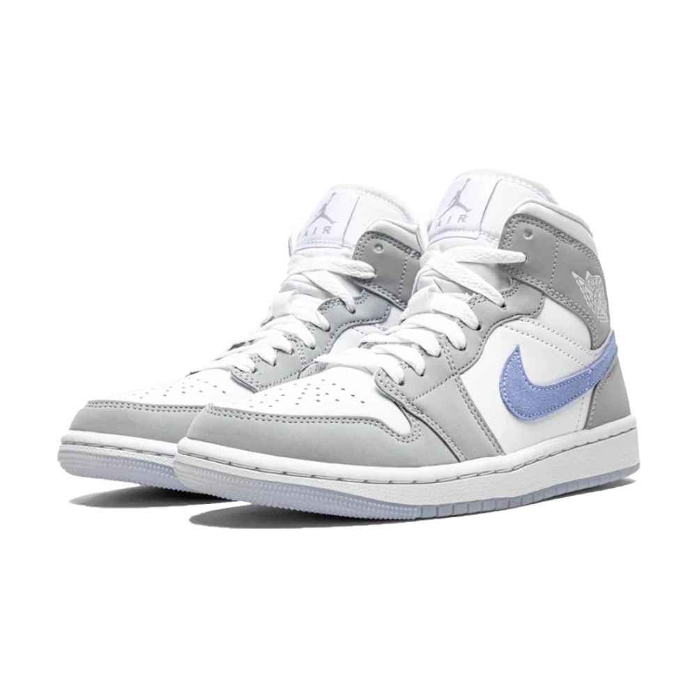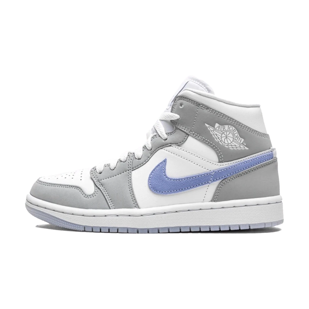 Jordan 1 Mid “Wolf Grey Aluminum” (Women’s) – čistý, svěží design s modrým Swooshem pro stylové sneakerheadky.