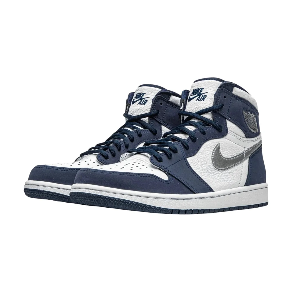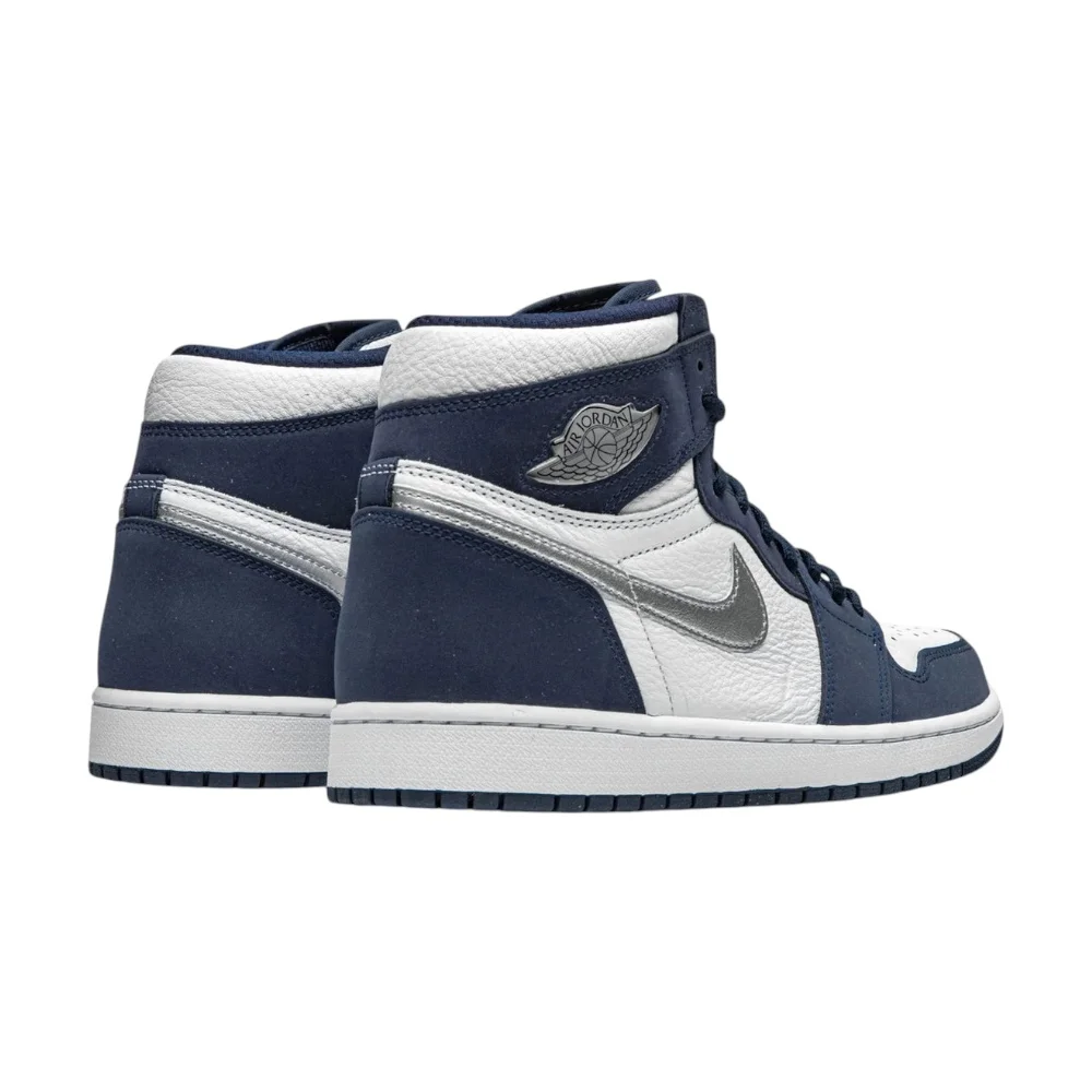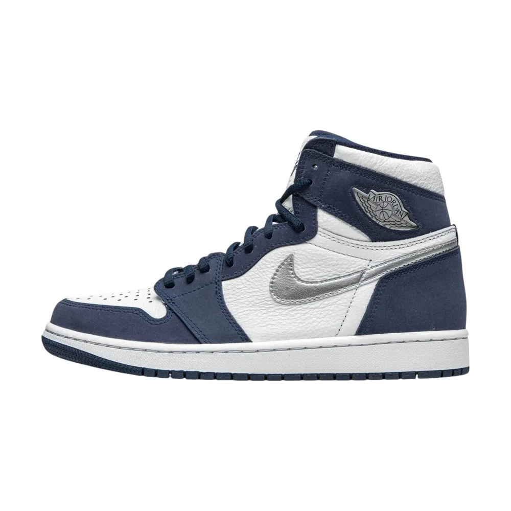 Jordan 1 High CO.JP „Midnight Navy“ (2020) – Bílá kůže, tmavě modrý semiš a stříbrné detaily inspirované japonskou edicí z roku 2001.