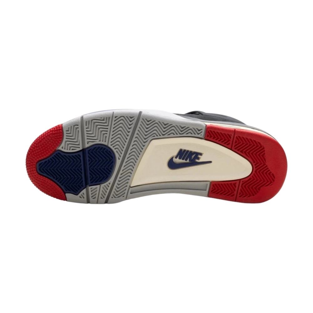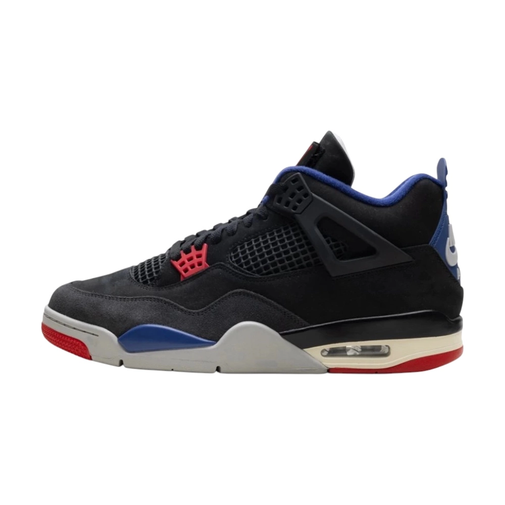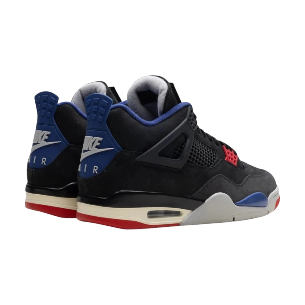 Air Jordan 4 Retro “Rare Air (White Lettering)” – černý nubuk, modré a červené detaily, odnímatelná patch a tlumení Air.