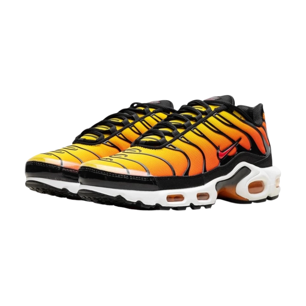 Nike Air Max Plus „Sunset“ (2024) – ikonické “Tnka” s legendárním gradientem od žluté po červenou, futuristickým vzhledem a pohodlným Tuned Air odpružením.