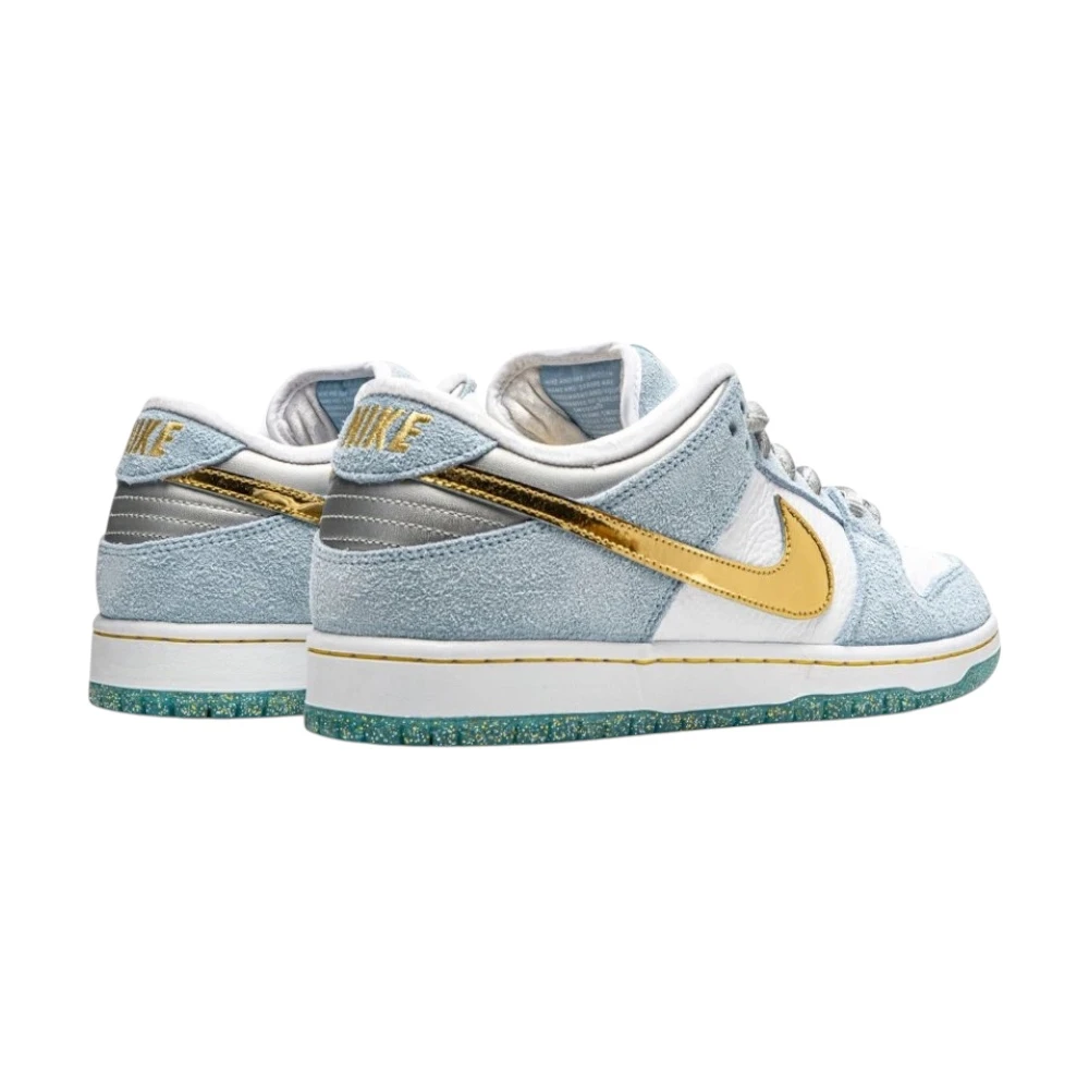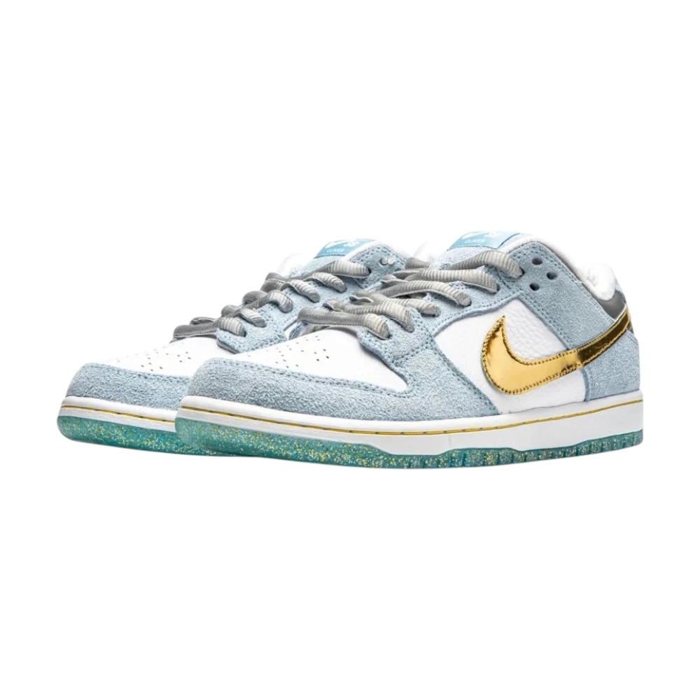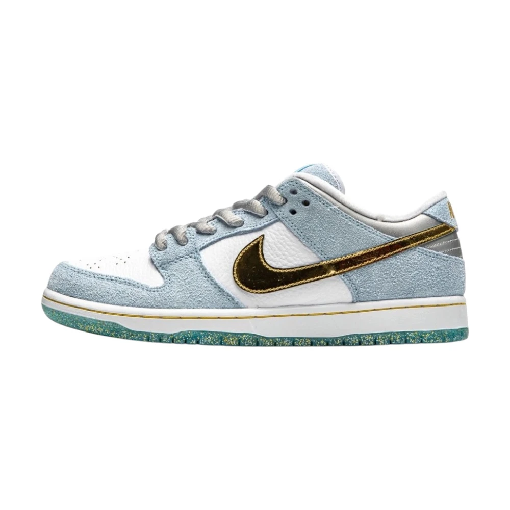 Nike SB Dunk Low „Sean Cliver“ vznikly ve spolupráci se skateboardovým umělcem a designérem Seanem Cliverem jako speciální sváteční edice. Svršek kombinuje světle modrý semiš s bílou kůží, zatímco zlatý Swoosh přidává luxusní nádech. Na patě a jazyku jsou umístěna speciální loga, zatímco vložky bot zdobí ilustrace s vánoční tematikou od samotného Clivera. Dokonalým detailem je třpytivá podrážka s vloženými zlatými částečkami. Prémiové materiály a propracovaný design dělají z tohoto modelu sběratelský klenot.